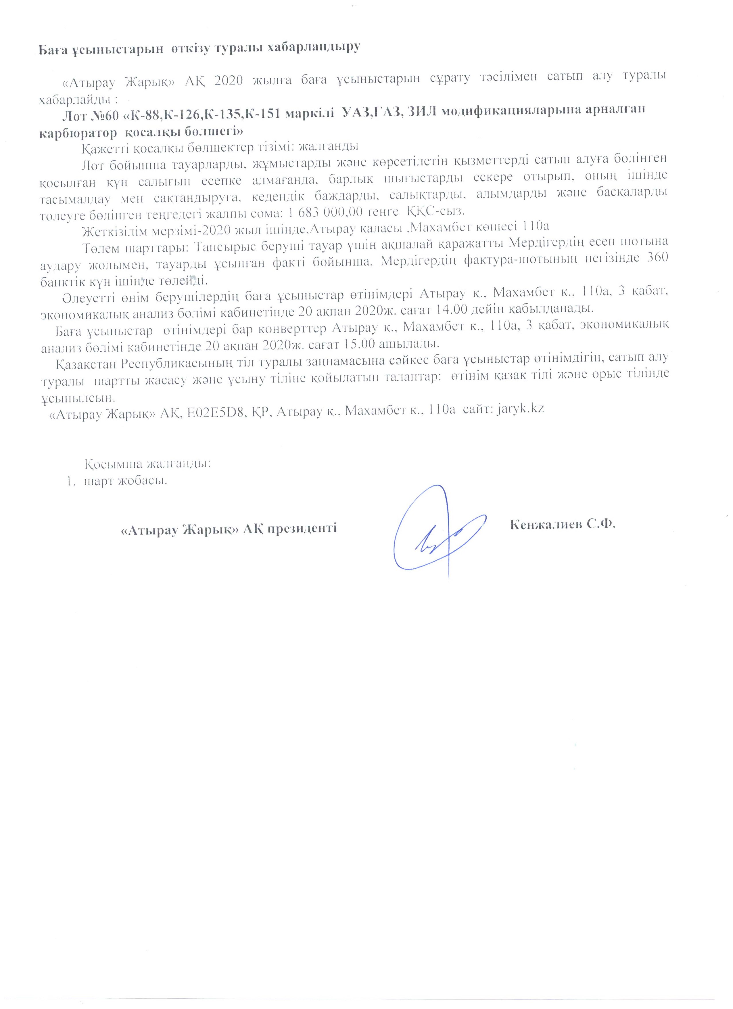 ЛОТ №60| ЖАРИЯЛАНДЫ